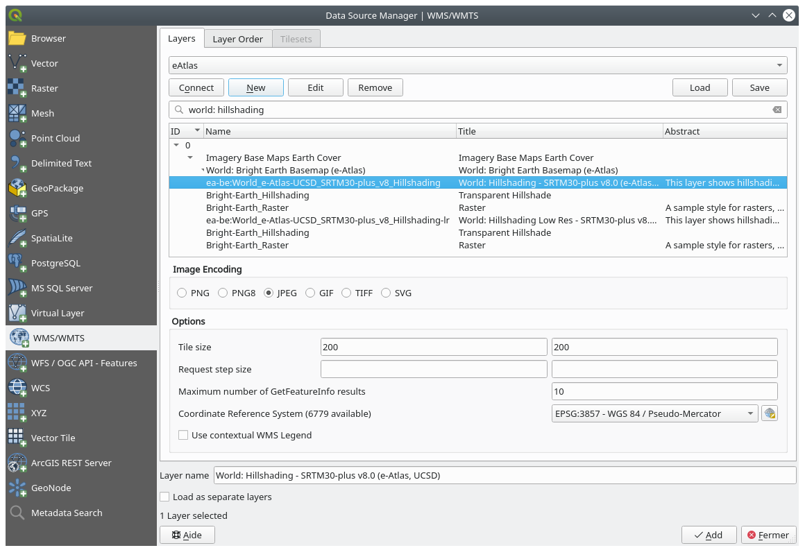 text box to filter the list of layers and select the corresponding layerRemember to check/turn its CRS into EPSG:3857 - WGS 84 / Pseudo Mercator as the rest of the map.