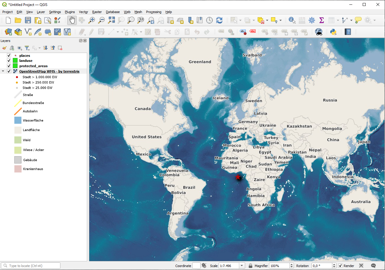 You’ll need a WMS address to continue. There are several free WMS servers available on the Internet. One of these is terrestris, which makes use of the OpenStreetMap dataset.