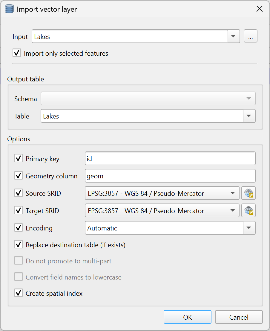Create spatial index: A spatial index will be created on the geometry column after import.