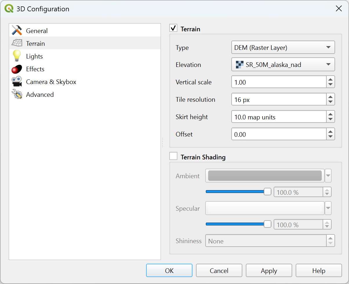 Fig. 7.24 The 3D Map Terrain Configuration dialog