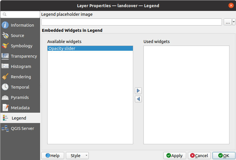 Informações é somente leitura e representa um local interessante para obter rapidamente informações e metadados resumidos da camada atual. As informações fornecidas são: