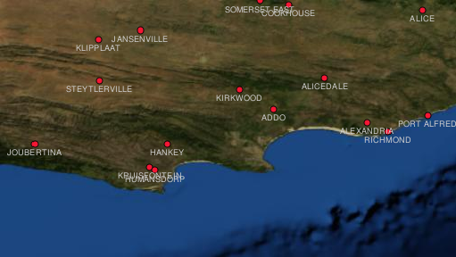 In other cases, raster data can be computed. For example an insurance company may take police crime incident reports and create a country wide raster map showing how high the incidence of crime is likely to be in each area. Meteorologists (people who study weather patterns) might generate a province level raster showing average temperature, rainfall and wind direction using data collected from weather stations (see Fig. 6.10). In these cases, they will often use raster analysis techniques such as interpolation (which we describe in Topic Análise espacial (interpolação)).