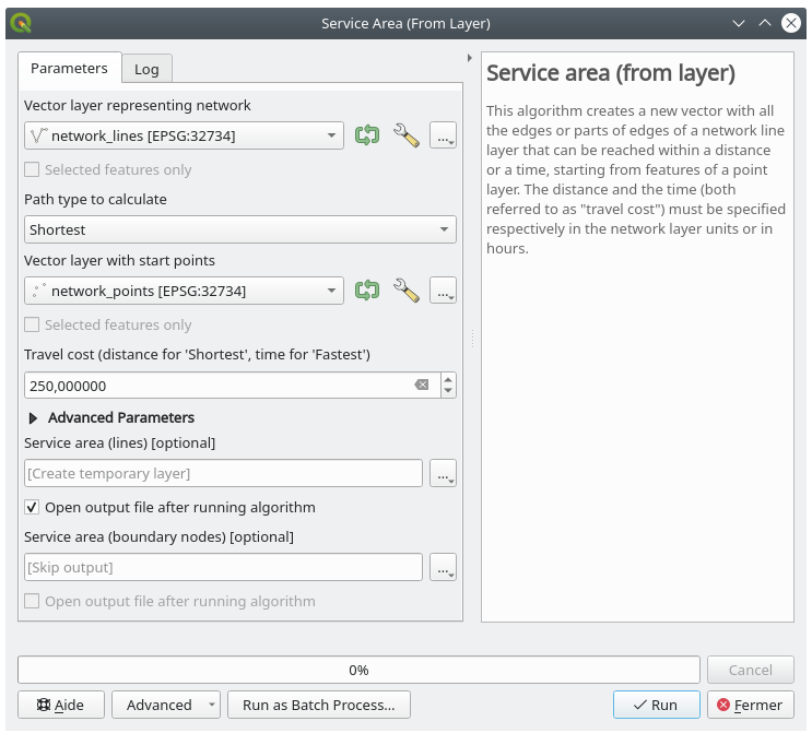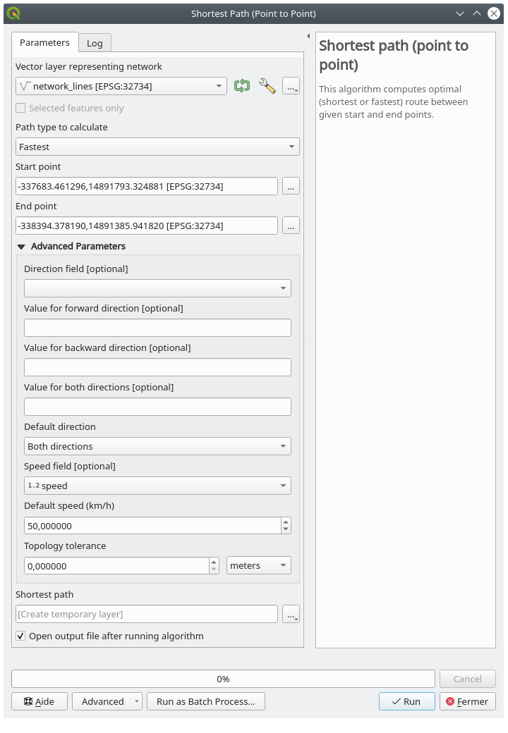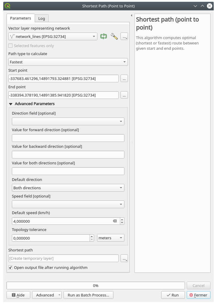 network_linesfor the Vector layer representing network parameterEm Tipo de caminho a calcular escolha