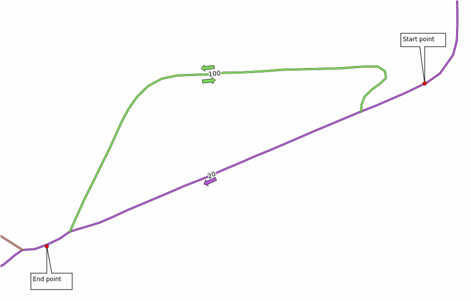 Let us explore some more options of the Network Analysis tools. In the previous exercise we calculated the fastest route between two points. As you can imagine, the time depends on the travel speed.
